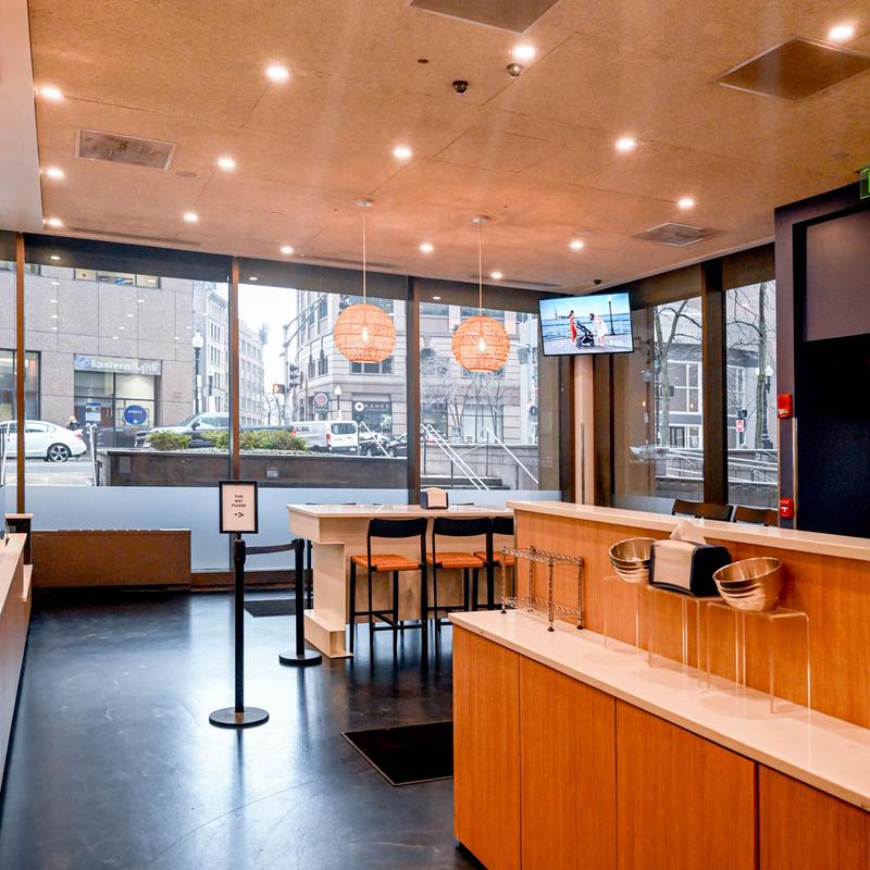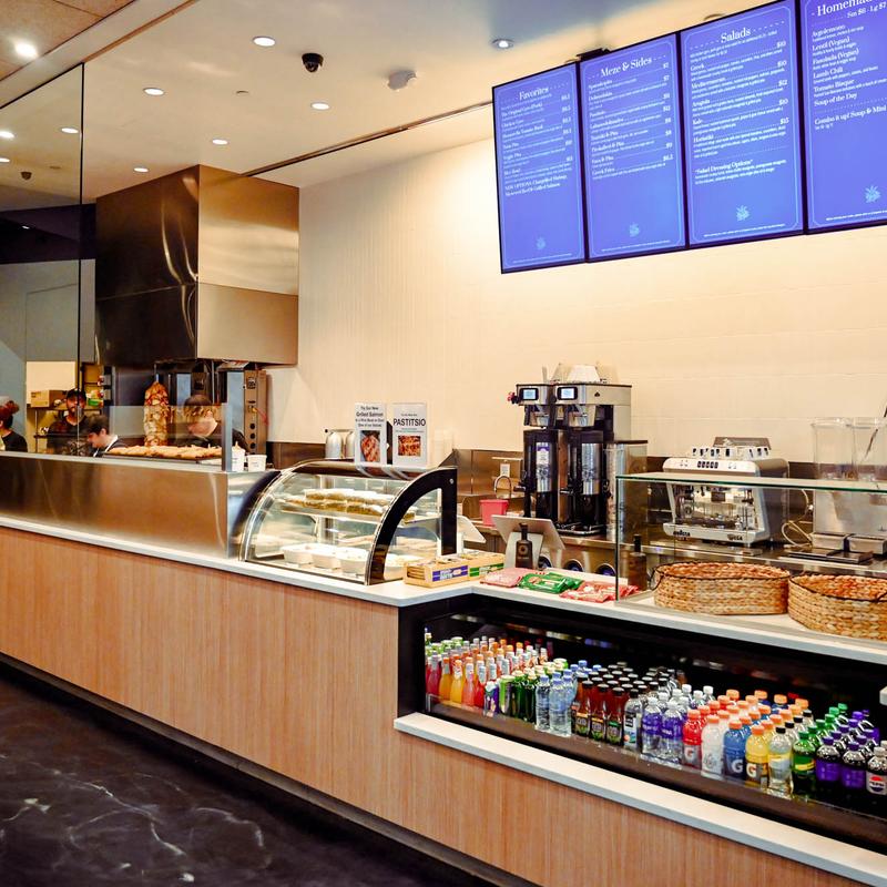 Zo Greek interiorOrder counter with display caseRestaurant interiorInterior spaceDining spaceInside Zo Greek restaurantInterior, a table with chairs and an order counter in the backExterior, entrance to a building where the restaurant is situatedInterior, order counter areaWindow graphicsDining areaZo greek Interior spaceSeating area insideCounter with staff in action